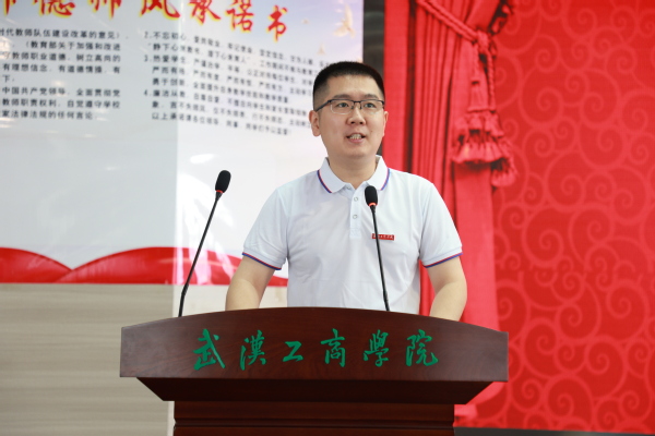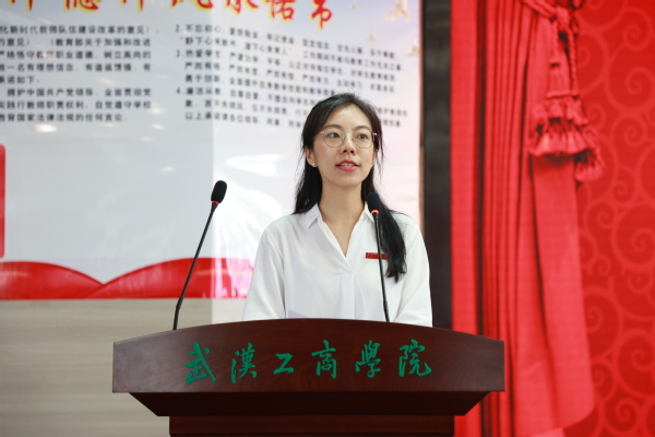 环境与生物工程学院的包静玥、电子商务学院的刘齐进分别作为优秀教师、新进教师代表发言。