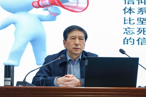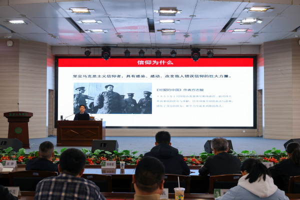 讲座中,张修富围绕“信仰是什么”“信仰为什么”“信仰靠什么”三个核心问题展开分享。他结合党史党纪学习教育与个人多年宣传工作经历,指出信仰是对某种思想、理论、学说的坚定信服,并由此生发出来的无比坚定、持久而又崇高的精神力量,它是指引人生不断前进的行动指南,是世界观、人生观、价值观在奋斗目标与社会发展愿景上的集中体现、整体呈现。他结合瞿秋白、方志敏、黄继光等革命先烈的事迹,以及长征、抗美援朝等历史事件,生动阐释了信仰对于个人成长、政党发展和国家兴盛的重要意义,强调坚定的共产主义信仰是中国共产党不断创造奇迹的根本所在,引导教师要深刻理解崇高信仰对个人成长与社会发展的重要作用。
