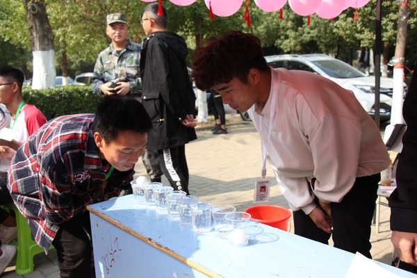 我院青协准备的吹乒乓球和踢毽子小游戏,更是吸引了不少同学来挑战,要把乒乓球从第一个杯子吹到第七个杯子中,中途乒乓球不落地才算挑战成功,大大激发了同学们的挑战欲,不少同学都争相挑战,帐篷内笑声不断。