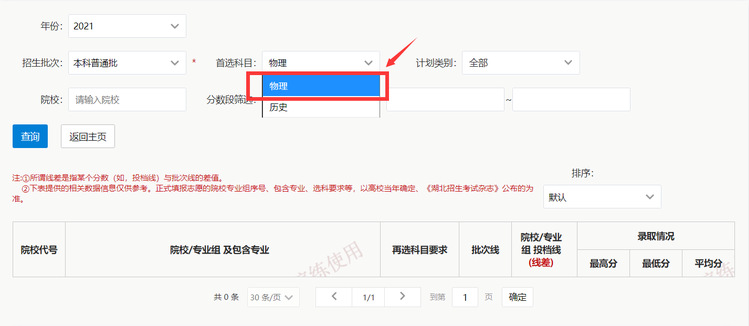 首选批次默认为物理,考生必须选择某一首选科目。比如:选择物理。