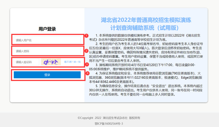 湖北省2022年普通高校招生计划查询与志愿填报辅助系统