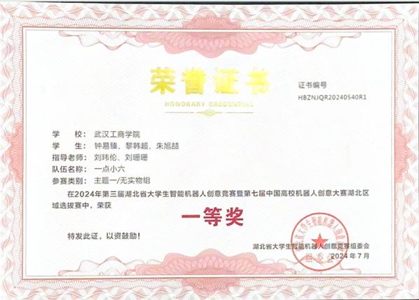 图为学校参赛队伍荣获湖北赛区一等奖
