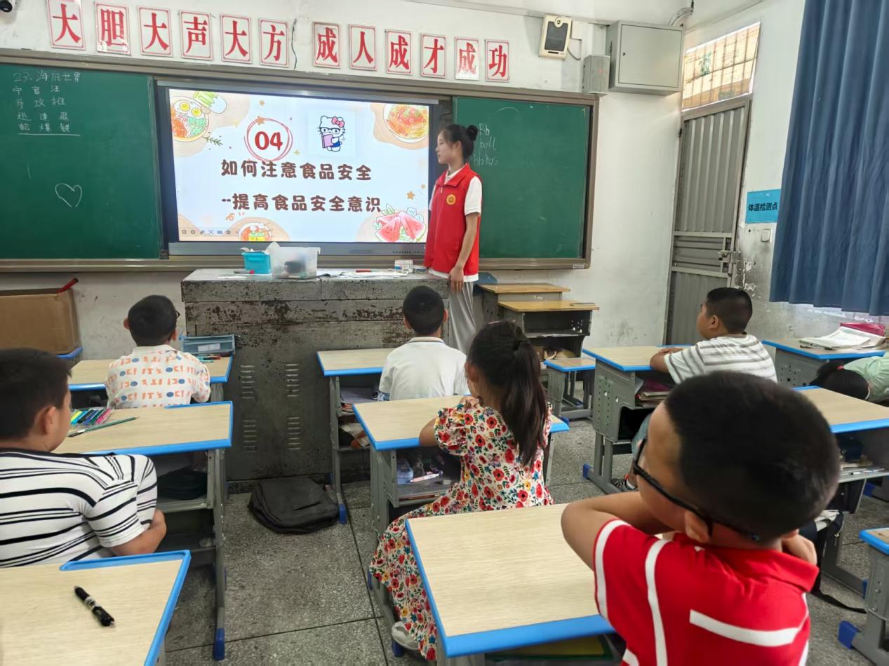 今天由罗艺涵老师开展“食品安全”为主题的课堂,在黑板上粘着发霉面包的高清图片,旁边的 “小心” 区里,泡发超过 24 小时的木耳标本在晨光里泛着可疑的半透明光泽。志愿者们抱着一摞手绘手册跑过来,封面上画着咧嘴笑的青脐橙,翻开却是 “哪些零食会藏陷阱” 的漫画:被蛀虫咬过的板栗画着哭脸,包装袋鼓胀的辣条被打上醒目的红叉,最末页还留着空白,等着小朋友们贴上自己画的 “危险食物”。