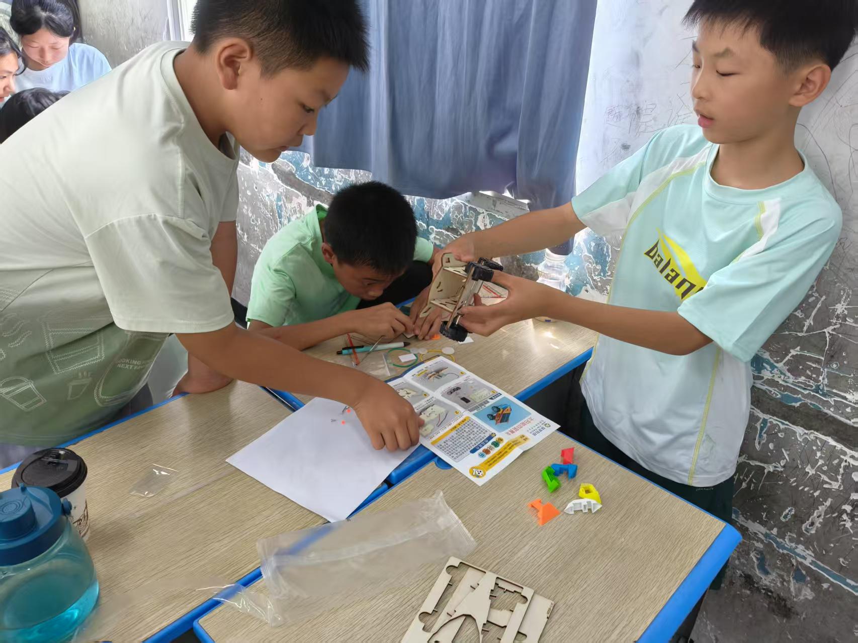 在爱心托管二班,李家兴老师正带着同学们探索科学的奥秘。老师首先向大家解释一些常见的自然现象提起大家的探索兴趣,随后给大家讲解了一些我们生活中常见科学原理。随后是实验小课堂,老师用磁铁给大家展示了指南针的工作原理,然后给大家讲解了太阳能转化为电能的原理。最后给大家分组拼装太阳能小车模型和太阳能直升机模型,虽然拼装过程有一定难度,但是每个团队都很团结,互相帮助探索正确的拼接方式。遇到困难时老师也在一旁细心指点鼓并给予帮助。最后每个小组都成功地拼出了作品。