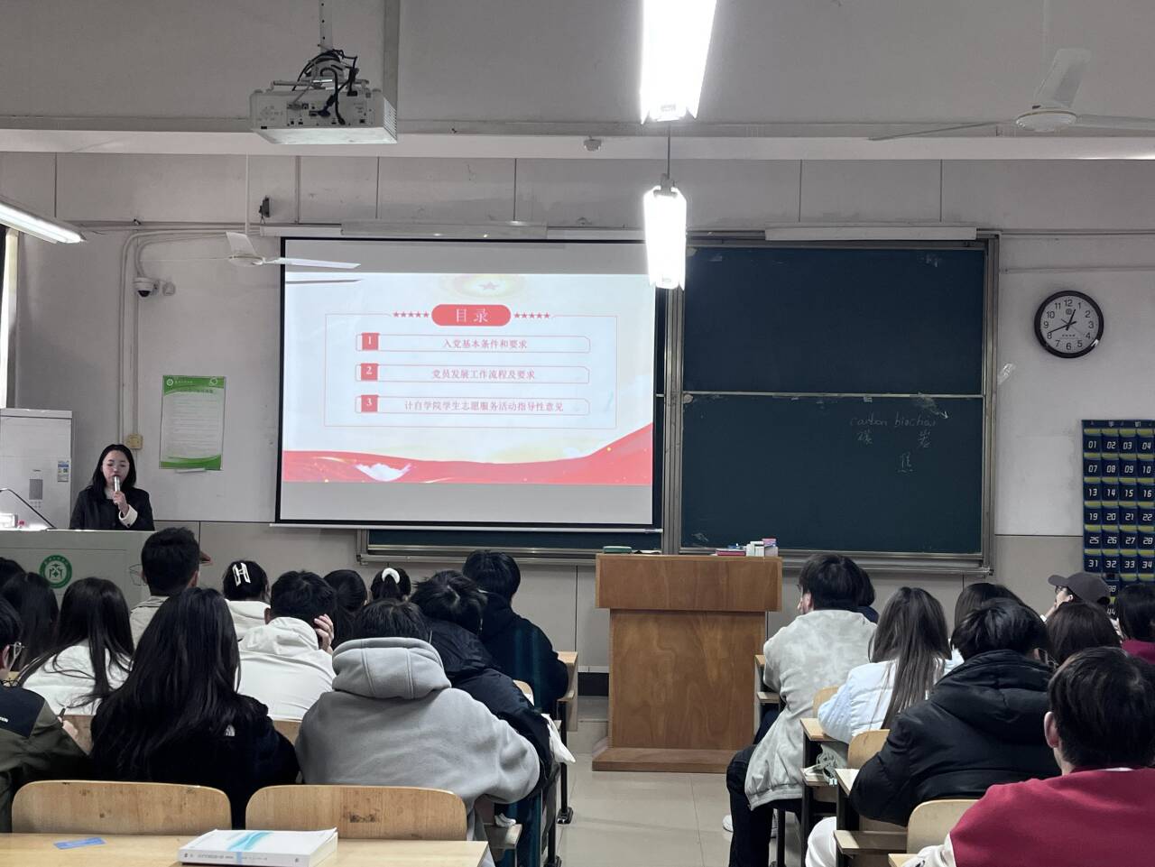 11月19日中午,计算机与自动化学院第十二期党校培训第五讲在弘德楼201教室顺利举行。为帮助入党积极分子系统掌握入党流程、明确入党基本要求、切实规范入党程序,吴甜甜老师以“入党流程及要求”为题授课,助力学员们在入党道路上踏实走好每一步。