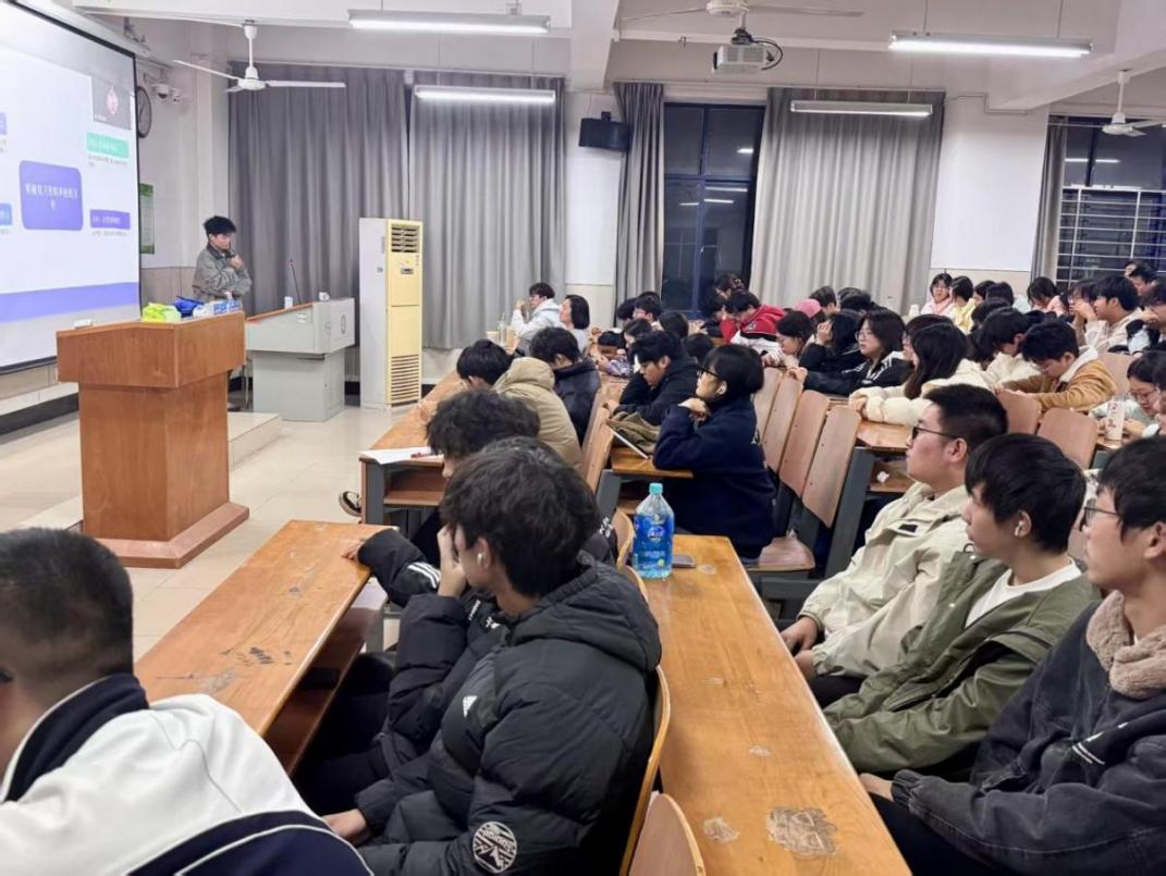 在求职经验分享环节,2024届机电专业校友易志通过线上方式,结合自身求职历程,分享了简历制作、笔试准备、行业选择等方面的经验,重点讲解了机电行业求职的核心竞争力与注意事项;2024届软工专业校友李昱兴则聚焦面试环节,从面试礼仪、常见问题应答技巧、技术面试准备等维度进行细致讲解,帮助同学们直观了解面试流程与应对策略。两位校友还针对求职过程中可能遇到的困惑,给出了针对性的建议,让在场学子对求职有了更清晰的认知。