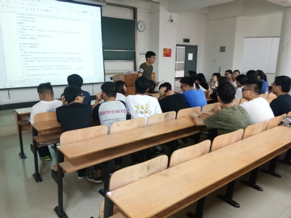 图为希杰荣庆武汉分公司总经理张刚为同学们介绍公司情况 摄影:王静