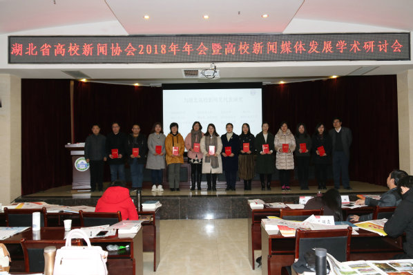 新闻中心讯(记者 万风)12月14日,湖北高校新闻协会2018年年会暨高校新闻媒体发展学术研讨会在武汉大学珞珈山庄召开。会上颁发了由中国高校校报协会评选出的2017年度全国高校校报好新闻奖和由湖北省新闻工作者协会高校分会评选出的湖北省高校新闻奖获奖证书。《开云kaiyun官网报》提交的作品荣获中国高校校报好新闻奖三等奖3项,湖北高校新闻奖二等奖2项,三等奖1项。开云kaiyun官网宣传策划部副部长蓝静参会并作为获奖代表上台领奖。
