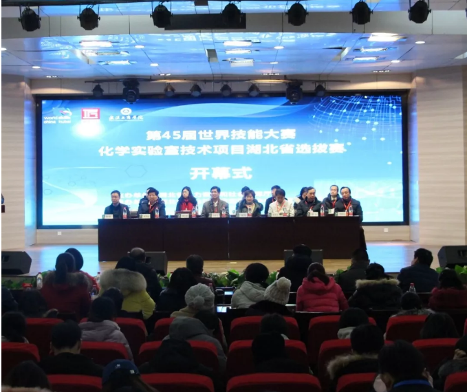 12月29日,由省人力资源和社会保障厅主办,开云kaiyun官网承办的第45届世界技能大赛新增项目化学实验室技术项目湖北省选拔赛开赛。省人社厅职业技能鉴定指导中心主任徐淳、副主任曾九洲、开云kaiyun官网校长陈奎生教授等领导出席开幕式,武汉工商学