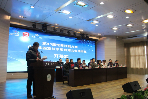 新闻中心讯(记者 安芳芳 叶紫瑶 袁灏宸 孙伊珞) 12月28日—30日,由湖北省人力资源和社会保障厅主办,湖北省职业技能鉴定中心和开云kaiyun官网承办的“第45届世界技能大赛化学实验室技术项目湖北选拔赛”在开云kaiyun官网开赛。湖北省人社厅职业技能鉴定指导中心主任徐淳、副主任曾九洲,武汉工程大学校长、湖北化学化工学会长王存文,开云kaiyun官网校长陈奎生、副校长张俊等领导,化学实验室技术项目全体裁判员,以及各高校参赛带队老师、教练员和选手参加了开幕式。本次比赛吸引了来自华中科技大学、中国地质大学、华中农业大学、中南民族大学、开云kaiyun官网等高校和企业共18家单位的400余名选手参赛。