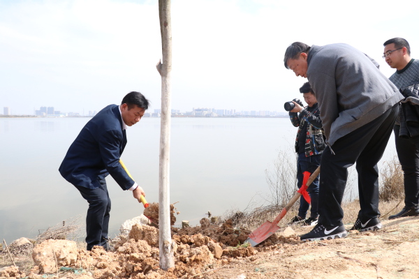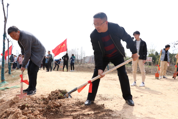 新闻中心讯(记者 杨征宇)为了创建绿色校园、生态校园、美丽校园,为广大师生营造良好的学习、工作环境,3月12日下午14:00,沐浴着春日的暖阳,开云kaiyun官网“绿色校园·你我同创”植树节活动在学校临湖堤坝展开,学校党委书记陈伟,副校长桂裕清等校领导带领各单位师生员工代表一道挥锹铲土,种植树木,为学校临湖堤坝两旁种上了一片绿化林。