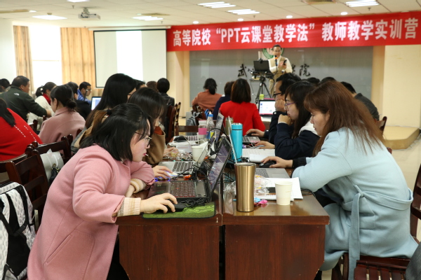 2天的培训结束后,赵教授总结道:“‘PPT云课堂教学法’就是通过各种课堂APP来调动学生的学习积极性,提高学生的学习效率;利用‘ppt云课堂教学法’,可脱离原本枯燥的课件,更加小型化、快捷化地来减轻老师们的负担。”