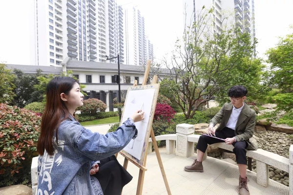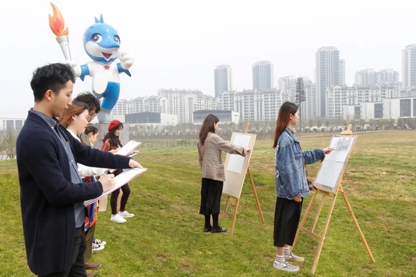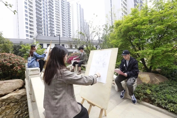 手绘现场,武汉保利金夏房地产开发有限公司军运村项目负责人郭方向师生们介绍了军运村建筑及园林设计的“中国”特色,他说,军运村作为军运会运动员们居住的“家园”,是向世界展示中国、展示武汉的靓丽名片,因此,整个军运村建筑都是新中式风格设计,处处彰显着中国特色元素,包含着中国传统文化的丰富内涵。