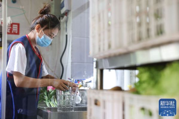 ↑6月27日,佘娅在贵阳诚善助老互助餐厅红岩东郡店内清洗花瓶。