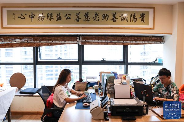 ↑6月27日,佘娅(左)在贵阳诚善助老慈善公益服务中心内工作。