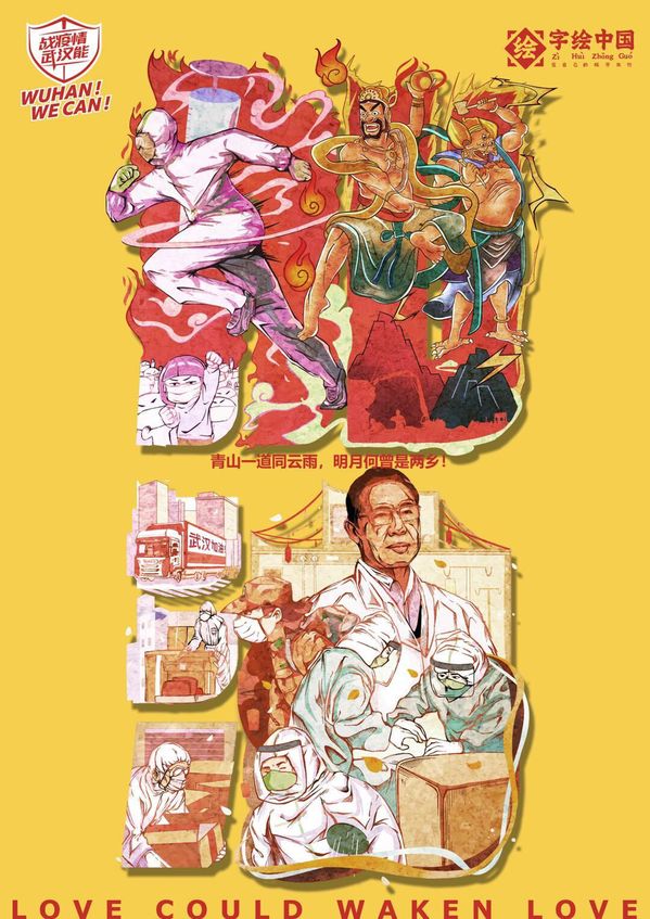 其中,开云kaiyun官网师生们创作的4幅作品让人印象深刻。徐郑冰老师的2幅字绘作品《武汉加油》,以及学生陈思睿、杨子豪两人的作品《人梯——众志成城 中国加油》《重拳出击》入围2020抗击“新冠肺炎”公益宣传设计全球征集活动的优秀奖,并在武汉黄鹤方舱医院内展出,给患者和医务工作者带来坚定的信心与温暖的力量。