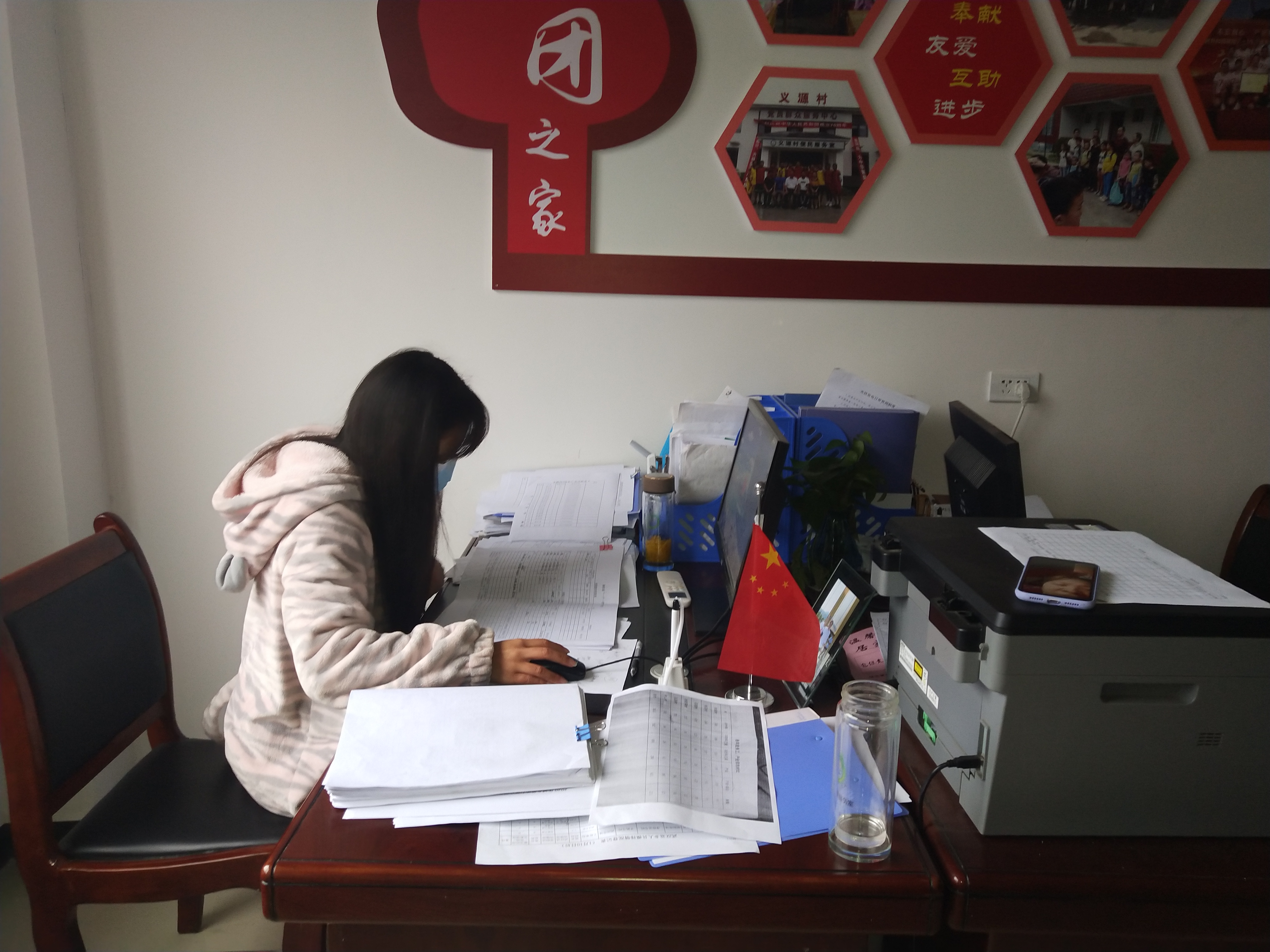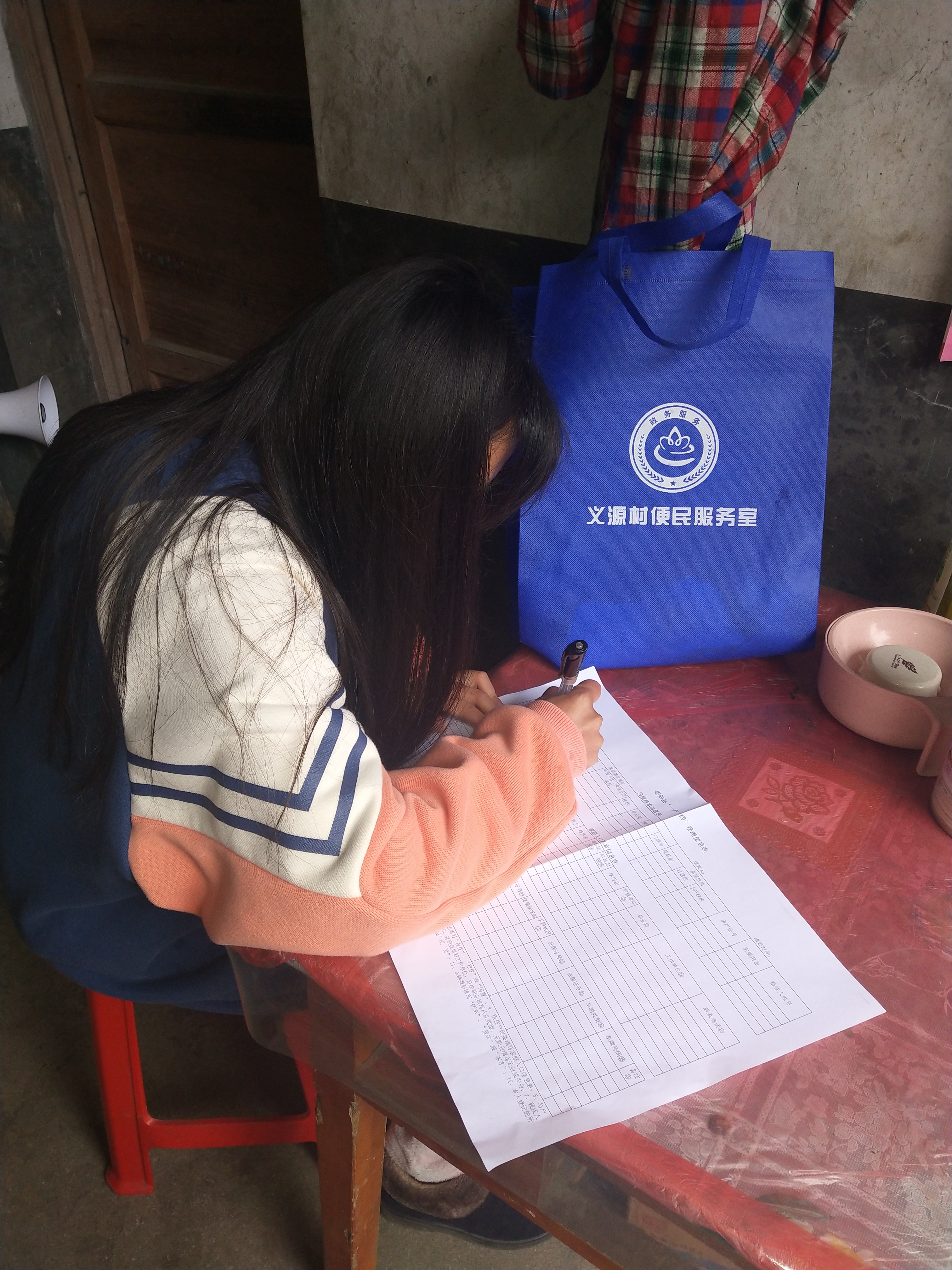 我也在背后默默的为武汉加油,贡献属于自己的一份力量!”18电信本1的张琼说到。2月27日张琼同学在湖北省咸宁市崇阳县高枧乡义源村村委会报名参加志愿者活动,主要工作是协助村干部登记“一户一档”信息管理表格,走访每家每户。她说很关心每一位村民的身体健康,在每次准备离开村民家中都会告知他们相应的疫情防护措施。