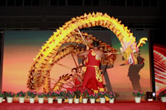 9月29日晚7点,我校2013年迎新暨国庆晚会在校田径会场上举行。我校党委书记陈伟、校长助理张俊、学工部部长陈义文、团委书记吴艳等和2013级新生及部分老生一同观看了晚会。 中国移动公司武汉分公司、我校大学生艺术团、经济与商务外语学院、管理学院、工学院、电子商务学院、民族教育学院、校拉拉队、校舞龙队共选送了舞蹈、歌曲、话剧、舞龙等12个精彩节目,为新生献上一场精彩纷呈的视听盛宴。 锣鼓声声,飞龙翻滚,精彩的舞龙表演拉开了迎新晚会的序幕,舞蹈《雅安情》深情演绎了志愿者营救生命的感人故事;以邓丽校友的故事为创作灵感的话剧《坚守》讲述了支教大学生的曲折经历;激情奔放的流行音乐《Rolling in the deep》掀起了晚会的高潮;独具民族特色的大型歌舞剧《民族之魅》更是大放异彩,由蒙古族、藏族、苗族学生分别表演的《十勇赞》、《康定情歌》、《醉苗乡》,以其光鲜亮丽的民族服装、独特的民族风情、精湛的演技,博得了观众们雷鸣般的掌声。 “晚会中让我印象最为深刻的节目是《雅安情》,这个舞蹈虽然没有一句台词,但是深深地震撼了我的心灵,表现真实,感人肺腑。”国贸专业新生陈梦功感动地说。 “今年晚会最大的亮点是民族风情浓郁,体现了我校的民族特色,看后给人留下了深刻的印象”,金融专业大二学生吴小云说。