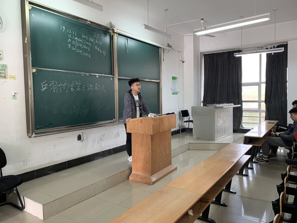 乒乓球部部长刘恒对乒乓球场地与每次到场人数进行了发言,指出其中存在的问题,也是为了让大家能够更好的参与乒乓球运动。