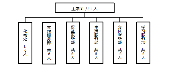 第二十一条校学生会设置六个部门(秘书处、权益服务部、生活服务部、实践服务部、文体服务部、学习服务部)各部门设部长1名,副部长1名,不得设置主席助理、部长助理等岗位,总规模不超过40人。主席团成员、各部门部长除日常工作与秘书长、指导老师等保持沟通联系外,每学年须向述职评议工作小组进行至少一次专题述职工作,接受评议、工作指导。