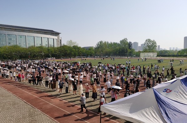 在这次检测活动中,我校在体育馆和外语楼分别设置了取样点,取样现场井然有序,青年志愿者分工明确,扫码的扫码,引领的引领。在检测中,全体人员按照防控要求,有序排队等候和完成检测,确保安全距离,防止产生人员聚集。我校更是结合教育、卫健部门指导意见和教师网络教学工作实际,组织学生,教师工人员分时分段、分期分批、错时错峰接受检测取样。为提供安全、卫生、便捷的检测条件保障。检测工作时间紧、任务重,学校领导高度重视,相关部门制定了工作方案,检测现场指挥得力,师生员工积极响应、服从安排,医护人员艰辛奋战、暖心服务,学生志愿者不畏辛劳、全力协助,检测工作有条不紊、安全有序顺利进行。