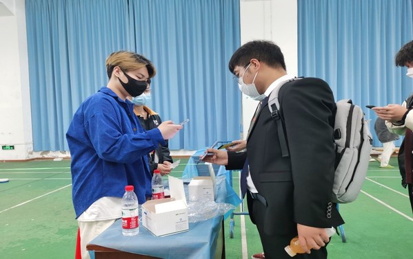 (图为接受扫码的同学)