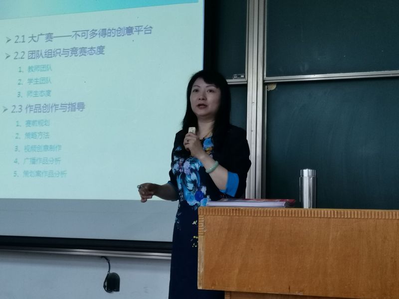 作为全国大学生广告艺术大赛湖北赛区的副秘书长,王晔老师向同学们介绍了这一赛事的作用。“大广赛是不可多得的创意和实践平台。第一,大广赛的命题都来自于企业,真题真做;第二,创意的落地与实现可以弥补课堂教学的不足,提升师生的创意思维;第三,这是一个提升自我能力的实践平台。”
