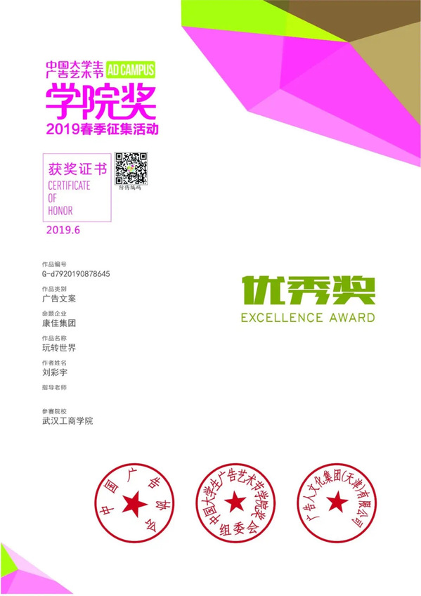 2020年,在第十二届全国大学生广告艺术大赛上,学生共获得国家级二等奖1个,国家级优秀奖3个,省级二等奖1个,省级三等奖5个,省级优秀奖9个。