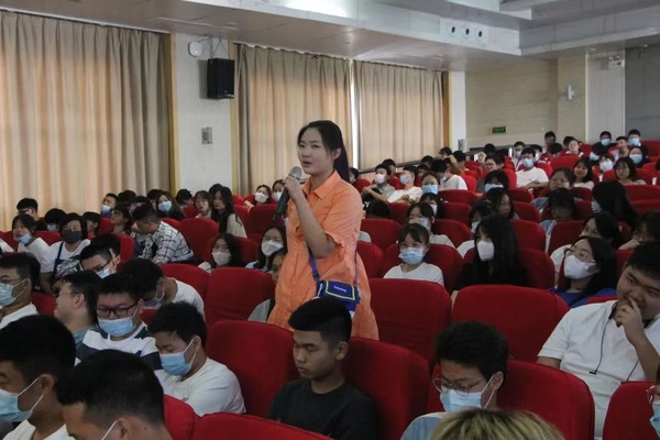 李义凡通过“你为什么要读大学?”、“人生观价值观世界观这个排序对吗?”以及“你想成为什么样的人?”这三个问题展开了自己的经验分享。活动现场气氛活跃,同学们踊跃发言,提出自己的想法,场上场下频频互动。