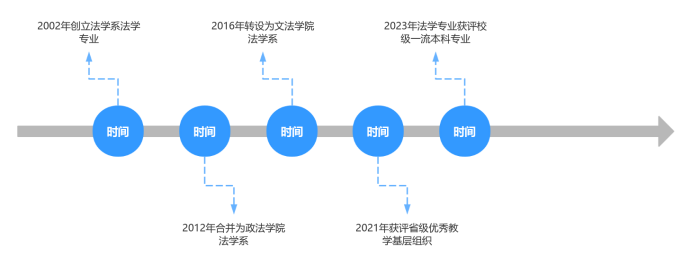 法学专业是工商学院在2002年创办时(当时的校名是中南民族大学工商学院)设置的17个本科专业之一,截止到2024年已有22年的办学历程。在人才培养模式从模仿中南民族大学到确立独立自主的应用型人才培养模式,师资队伍从以兼职教师为主到自有教师为主,教学方式从课内教学为主到课堂理论、三学期专业实习、法考培训相结合等等方面,逐步摸索出一条适合自身定位的教学和人才培养之路。