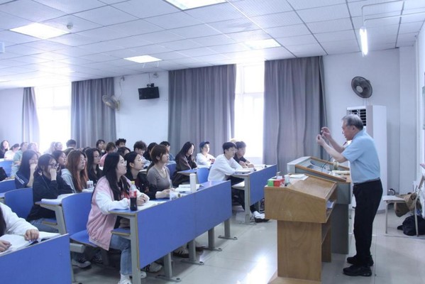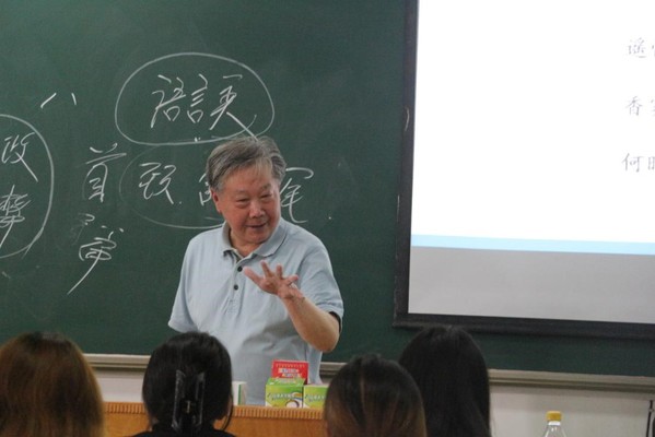 2024年4月3日上午,文法学院2023级广告学专业学生和全体无课教师再次来到张金海院长《古代文学作品选讲》的课堂上。课程一开始,张金海院长便借用《孟子·尽心下》中的“贤者以其昭昭使人昭昭,今以其昏昏使人昭昭”的名句告诫讲台下的老师们,在教学中千万不能“以其昏昏使人昭昭”。而后,张金海院长结合自己50年如一日的教学坚守向老师们表达了唯有“忠爱”教育事业才能成为一名称职老师的感慨。