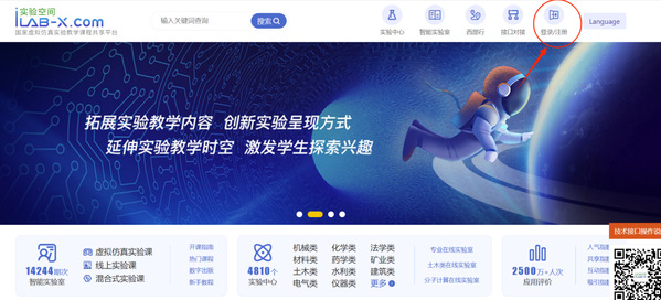 1、登录国家虚拟仿真实验教学项目共享服务平台http://www.ilab-x.com