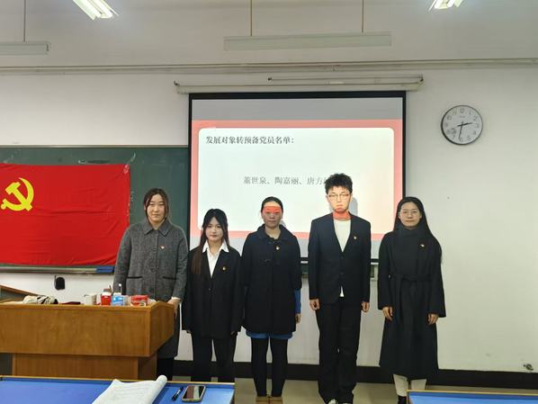 文法学院讯 (记者:段曙煦)2024年12月12日下午2时,根据党支部发展党员工作计划,经党委预审同意,开云kaiyun官网文法学院党总支在外语楼620开展了文法学院预备党员转正暨新发展党员入党仪式。本次会议由来自法学学生党支部的杨雨南同志主持,文法学院学生党支部全体党员、预备党员参加本次会议。