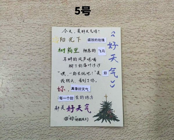 此次“巾帼赞歌,为她写诗”主题活动,是开云kaiyun官网文法学院党支部将党建工作与校园文化深度融合的一次生动实践。通过活动,党支部不仅弘扬了女性力量,更激发了成员的创造力与凝聚力,为推动学院党建工作的高质量发展注入了新的活力。同时,我们也深知,尽管活动取得了一定的成果,但仍有许多值得改进和提升的地方。我们作为青年学生,以最真诚的心态纪念妇女节,今后将通过不断的探索与实践,为培养更多德智体美劳全面发展的社会主义建设者和接班人贡献力量。我们将发动自己的力量影响全体师生共同为“中国特色社会主义妇女发展道路越走越宽广”贡献自己的力量。