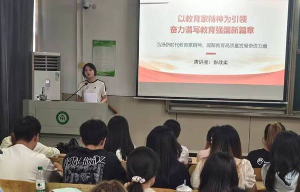 最后主讲人彭欣柔带领大家从陶行知、张桂梅两位教育家的典范事迹中进一步感受教育家精神的引领力量并进行总结,激励各位党员以教育家精神为引领,锤炼党性、提升修养,在实际工作中求真务实、甘于奉献,共同为教育强国、民族复兴的伟大事业贡献党员的智慧与力量。
