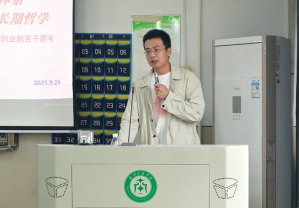 讲座中,章崴校友结合自身十年创业经历,以“95后文科生在鄂创业”为核心展开分享。他首先感慨校园近年来的发展变化,随后以创办红舟传媒的历程为切入点,讲述了自己如何将“红船精神”融入企业发展——创业初期便秉持“敢为人先”的理念,在互联网大数据与新媒体行业的激烈竞争中,精准挖掘“蓝海”市场。为启发新生创新思维,他还分享了深圳南投古城特色照相馆、洛阳“五黄盛宴”沉浸式餐饮等调研案例,鼓励新生找准自身擅长领域与兴趣方向,将优势发挥到极致。