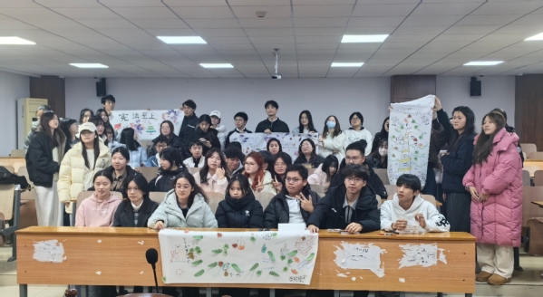 在“宪法知识限时抢答”环节,同学们围绕宪法基本知识展开激烈竞答。“我国第一部宪法颁布于哪一年?”“国家宪法日是哪一天?”……问题兼具基础性与趣味性,现场举手如林,气氛紧张而活跃。紧接着的“看图猜宪法名词”环节更是妙趣横生,一幅幅抽象且有趣的猜题对应“检察院”“起诉状”“代理权”等专业名词,同学们在观察与联想中深化了对法律术语的理解。随后的“法治主题长卷创作”环节将活动推向共创的高潮。同学们围绕同一幅长卷共同创作,先在便利贴上抒写宪法理解与法治心愿,再将其作为一片片“法治叶”悬挂于同学们绘制的“宪法常青树”上;同时以天平、法槌、法典等法律元素点缀画卷,凸显“尊宪守宪”“法治同行”的宣传理念。手写心愿与手绘符号交相呼应,个人承诺与集体创作融为一体,一幅寄托法治理想、彰显青年担当的“宪法常青画卷”在协作中渐次成形。