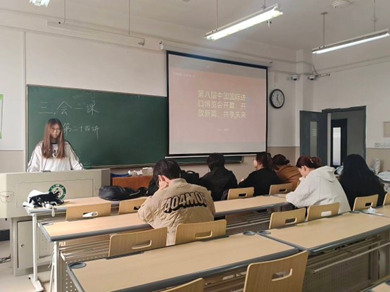 首先,夏映昕同志带领大家回顾了进博会的启幕盛况。2025年11月5日,第八届中国国际进口博览会在上海国家会展中心开幕,吸引了来自155个国家和地区、4100多家境外企业参展,展览面积和企业总数均创历史新高,彰显了中国市场的强大吸引力。开幕式吸引了世界各国政商学界代表约1500人出席,包括多国总理及国际组织负责人,进博会已成为全球共享中国市场机遇的重要平台,为全球经济复苏注入动力,展现了中国推动建设开放型世界经济的大国担当。国务院总理李强在开幕式主旨演讲中强调,进博会越办越好,关键在于坚持“与天下同利”,呼吁各国在国际经贸活动中秉持平等互利、坚守道义、推进治理改革的价值理念,共同推动自由贸易和多边合作。