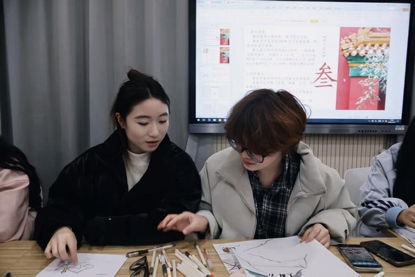 接力创作环节趣味与挑战并存。每人每次仅有6-8分钟的创作时间,小组需完成4-6轮循环作画。创作形式不拘一格,写意、抽象、工笔、漫画等风格均可大胆尝试,同时鼓励融入现代元素与象征手法,让古典诗意与青春创意实现深度融合。现场不仅配备画纸等基础物料,还贴心准备彩笔、马克笔、水彩等备用工具,方便大家尽情挥洒创意。