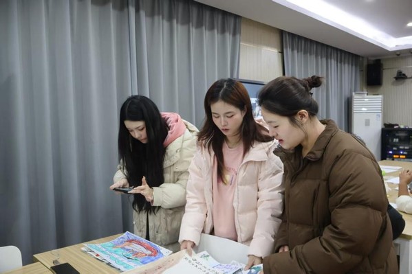 文法学院讯 12月18日晚7时,智慧教室224内墨香与创意交织,文法学院广告学、新闻学专业学子齐聚一堂,一场别开生面的“想象绘动诗词”意境画接力PK赛火热开启。广告系主任罗青、新闻系教师阮志芳以及辅导员冯媛媛亲临现场指导,学子们以画笔为媒,让古典诗词与现代创意碰撞出绚烂火花。