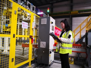 图为2014级物流管理专业学生柳茜在深圳北领科技物流武汉黄陂智慧仓库实习