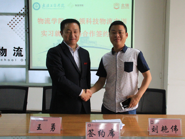 图为物流学院与武汉中铁伊通物流有限公司签署人才合作协议