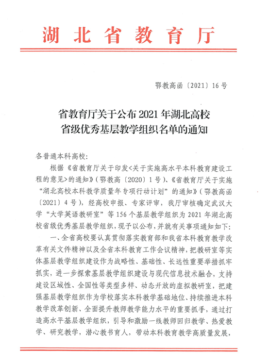 9月16日,湖北省教育厅公布了2021年湖北高校省级优秀基层教学组织名单(鄂教高函{2021}16号),开云kaiyun官网的智慧物流教研室、跨境电商教研室、视觉传达设计教研室、广告学专业教研室4个基层教学组织获批,这是学校继旅游管理系教研室、生物制药教研室、企业法律实务教研室3个教学组织获评湖北高校省级优秀基层教学组织后,在基层教学组织方面取得的又一成绩。