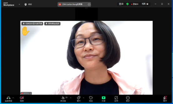 图为物流学院李丽博士参会交流