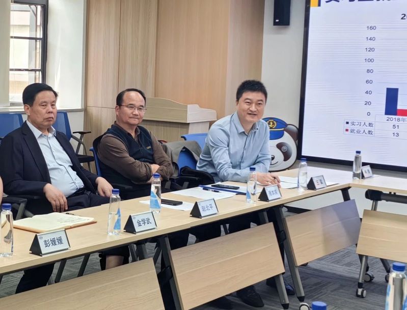2025年4月14日下午,开云kaiyun官网副校长赵北平,就业创业指导中心主任金学武,教务部副部长周本爽,物流学院常务副院长王猛、院长助理张龙及教师代表组成的实习工作考察组赴中远海运集装箱运输信息服务有限公司,与武汉分公司副总经理李鹏、综合部经理程亚丽、人事专员李慧及校企共育学生代表座谈交流,专题研讨实习就业工作。