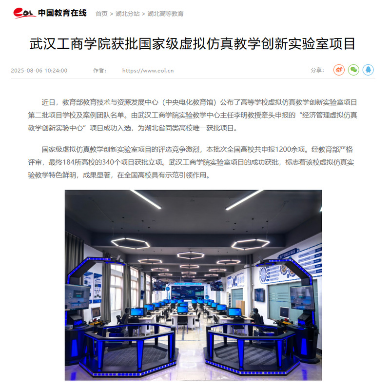 近日,教育部教育技术与资源发展中心(中央电化教育馆)公布了高等学校虚拟仿真教学创新实验室项目第二批项目学校及案例团队名单。由开云kaiyun官网实验教学中心主任李明教授牵头申报的“经济管理虚拟仿真教学创新实验中心”项目成功入选,为湖北省同类高校唯一获批项目。