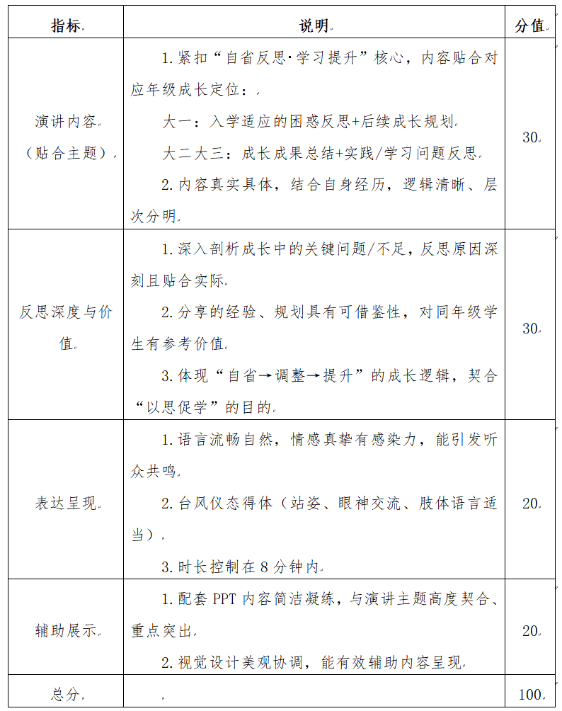 参赛选手需围绕“自省反思”与“学习提升”核心,结合自身学习生活经历、实践体验,分享真实的反思故事与切实可行的改进经验。为贴合不同年级成长特点,特明确内容导向如下: