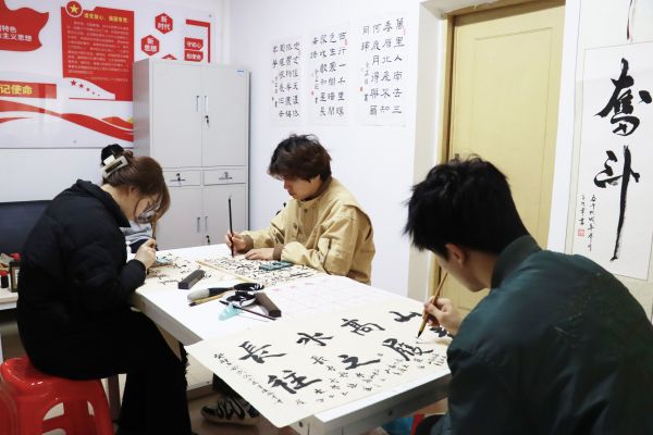 了解到不少学生对书法和国画等的喜好,该校艺术与设计学院的戚月老师在5栋学生宿舍的社区驿站开设了免费书法、绘画兴趣课,利用课余时间教学生们练习书法、画国画。在“一站式”社团文化中心,同学们随时可以开展社团文化活动和各类体育运动,提升综合素质。