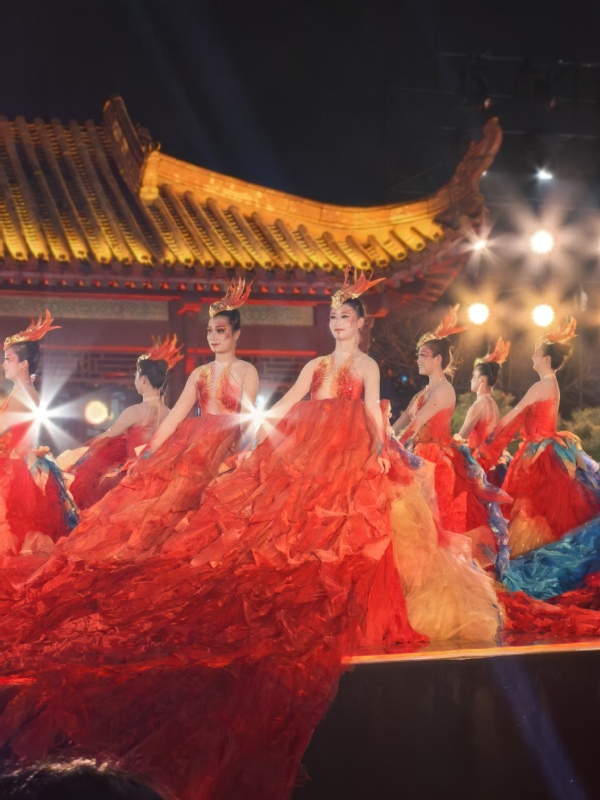 图为武工商学子参与央视春晚武汉分会场主题节目《星汉耀江城》凤凰舞蹈表演录制