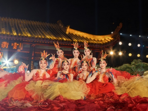 图为武工商学子参与央视春晚武汉分会场主题节目《星汉耀江城》凤凰舞蹈录制